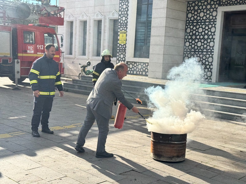 İtfaiye ekiplerinin destek verdiği tatbikatta, çalışanlara yangın söndürme cihazlarının kullanımı ve doğru davranış yöntemleri hakkında uygulamalı eğitim verildi.
