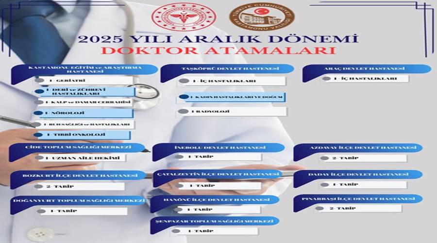 ✅ Araç İlçe Devlet Hastanesi iç hastalıkları bölümüne 1 uzman hekim,