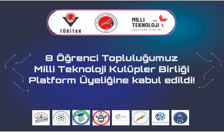 Sanayi ve Teknoloji Bakanlığı koordinasyonunda, TÜBİTAK desteğiyle yürütülen Milli Teknoloji Kulüpler Birliği kapsamında, Kastamonu Üniversitesi bünyesinde faaliyet gösteren sekiz öğrenci topluluğunun platform üyeliği başvurusu kabul edildi.